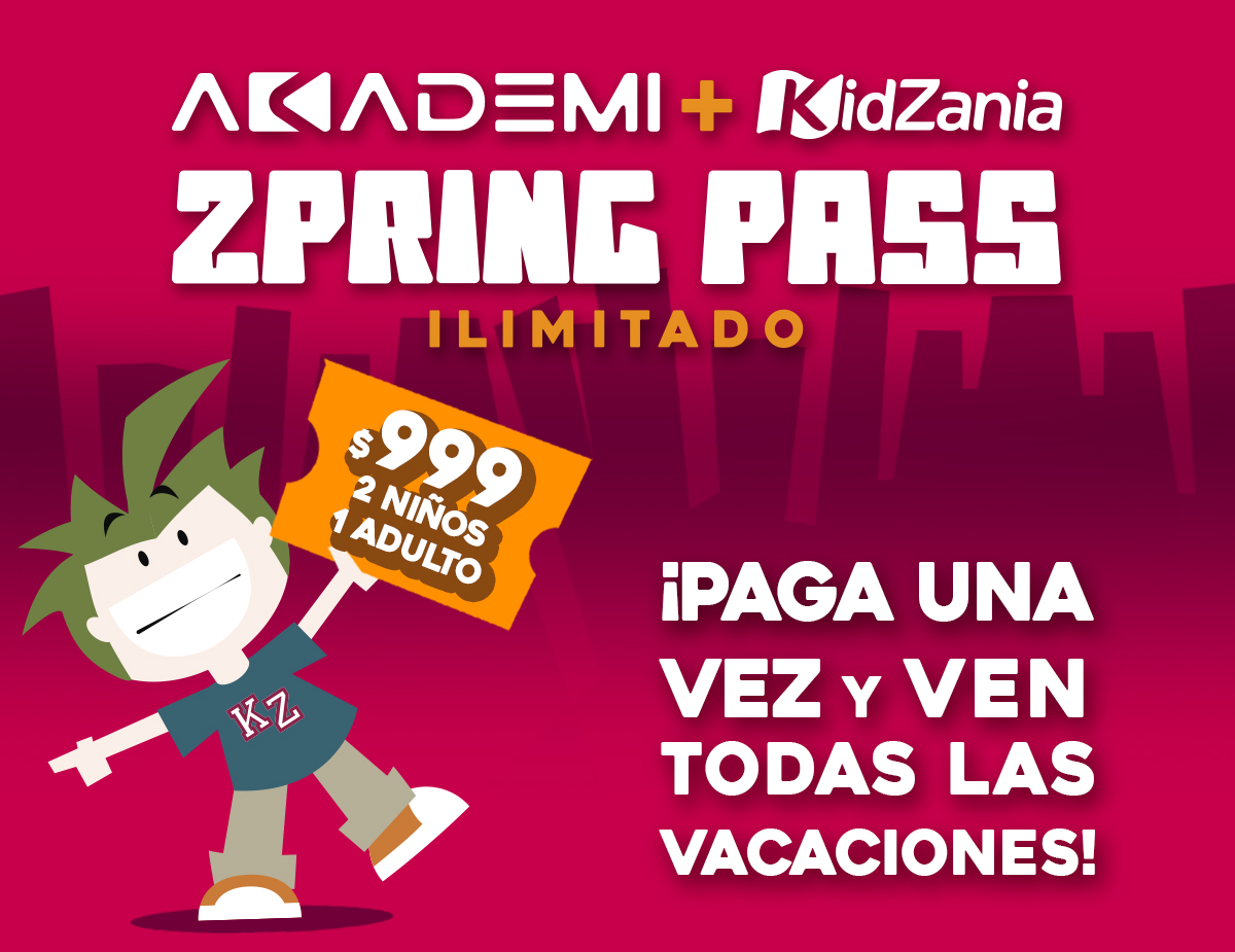 Aplica para la compra de 2 boletos de niño y 1 boleto de adulto para visitas ilimitadas, válidas durante la temporada vacacional del 27 de marzo al 12 de abril de 2026, en cualquiera de nuestros centros KidZania: Cuicuilco, Guadalajara, Monterrey, Santa Fe y/o ACADEMI en Puebla. No es acumulable con otras promociones, fiestas o visitas escolares. Los boletos de esta promoción son personales e intransferibles, por lo que no podrán venderse, cederse ni transferirse a terceros. Asimismo, no son reembolsables ni canjeables por dinero, ya que forman parte de un beneficio promocional sin costo adicional. El acceso estará sujeto a disponibilidad, aforo y las políticas de cada centro. |